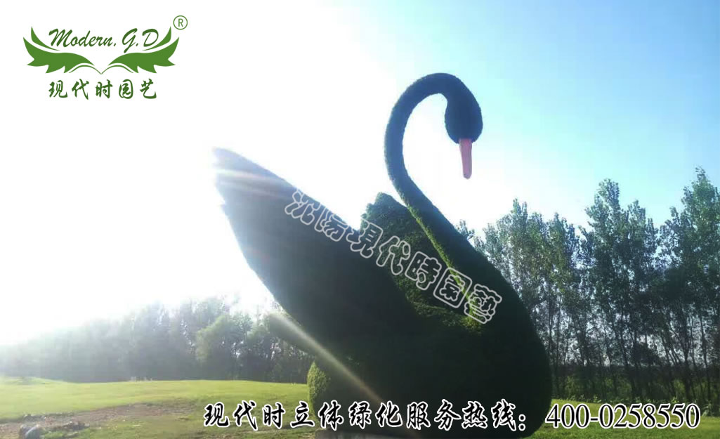 五色草雕塑 天鵝造...